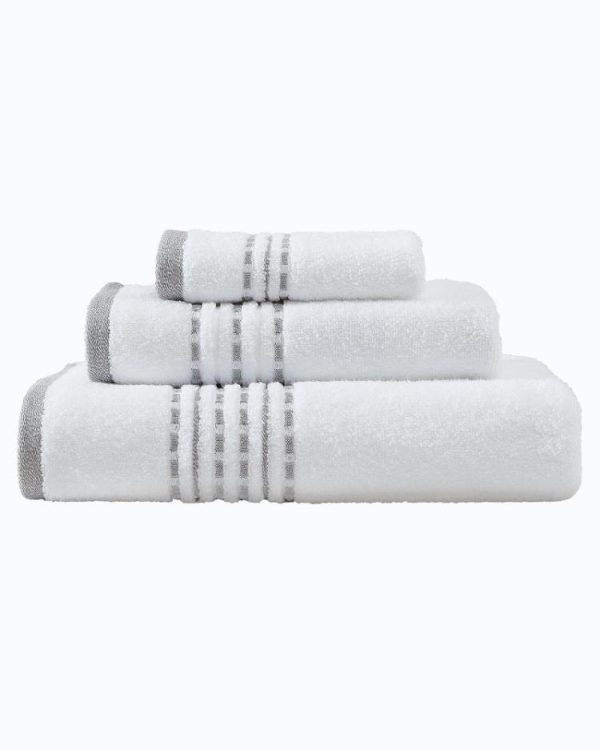 Make your bathroom feel like a five-star spa with this plush set of midweight cotton terry towels, featuring an understated yet elevated grey stripe design.