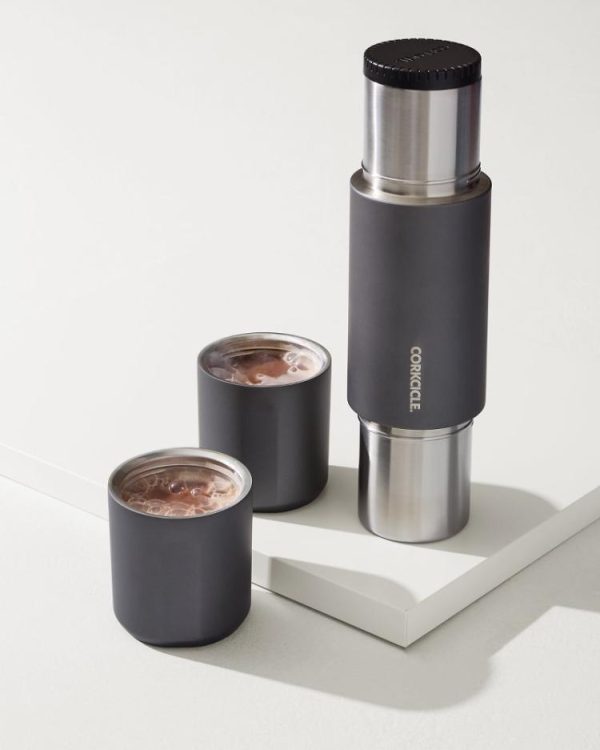 It’s easy to say cheers with this innovative, portable 36-oz. thermos. The leak-proof vessel is triple insulated and secured with two rocks glass-inspired lid covers that double as 10-oz. cups—perfect for sharing a cup of cocoa around the campfire.