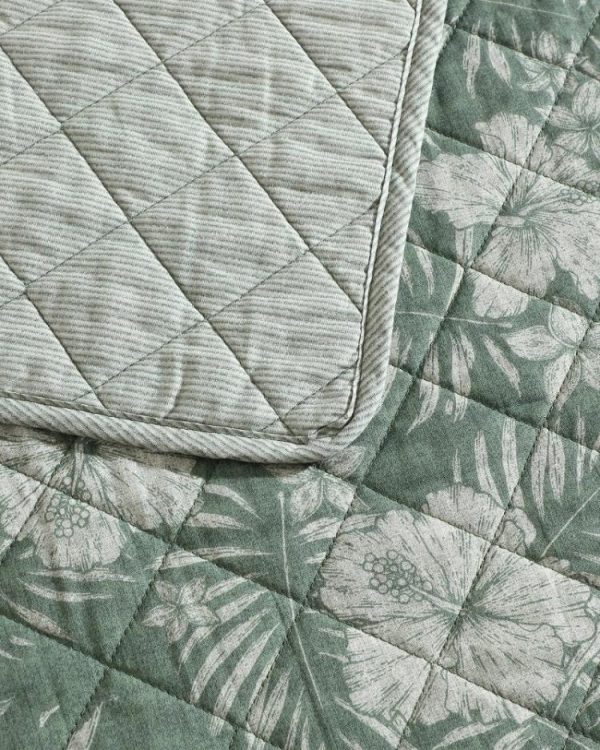 Add a breathable, fresh layer to your bedding ensemble with this sophisticated and island-inspired reversible quilt set. Featuring a moody botanical print with a versatile muted hue on its reverse side, this bedding effortlessly elevates your space, while embracing the spirit of paradise.