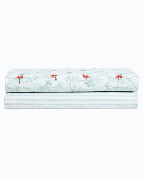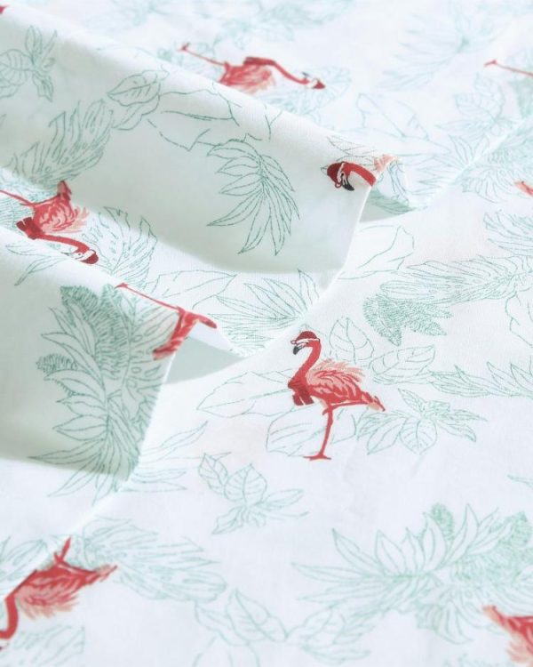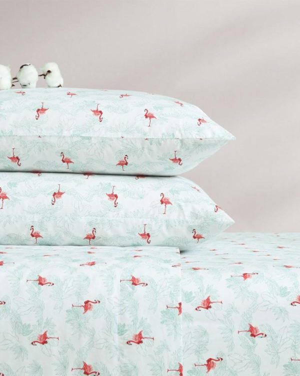 A festive flamingo print brings the good cheer to your bedding ensemble in this holiday-ready sheet set, crafted from breathable cotton.