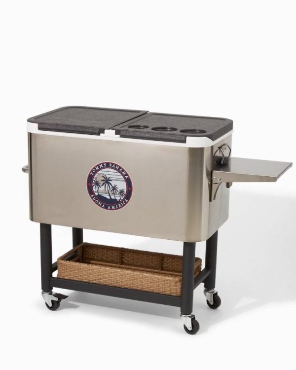This rolling cooler is party ready. Made to entertain, this cooler can hold up to 130 cans, and features a bottle opener with a cap catcher as well as a folding shelf and lower storage area. The 100-quart Rolling Cooler is guaranteed to keep the party going well after the sun goes down.