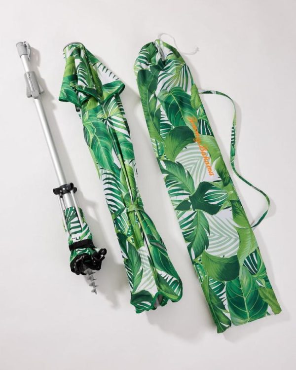 Don’t let a little wind put a damper on your beach day! The Tommy Bahama beach umbrella with ANCHORX™ is renowned for its stability, staying firmly planted on the ground even on extra breezy days. Forget filling sandbags and flimsy umbrellas; folding easy-grip handles make setup easy—all you need to do is unfold, anchor in the base, then relax—you’ve got it made in the shade.
