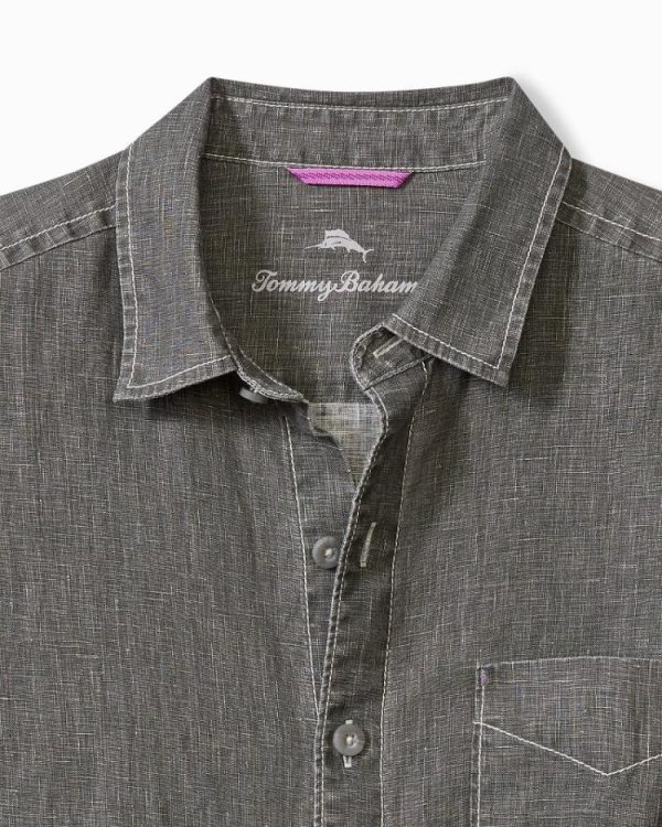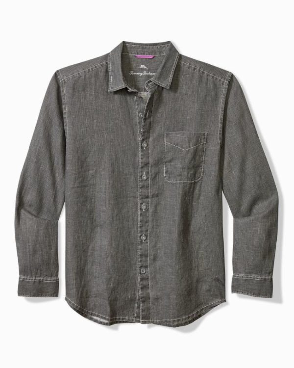 Sunset on a secluded beach. The last light of day bathes swaying palms. Digging your feet into the warm sand. That’s the relaxed feeling you’ll have when you wear this incredibly lightweight shirt. Made from soft premium linen for comfort in warmer weather, it’s pigment printed with a solid color for an incredible look that gets better over time. A front pocket provides the perfect spot for your Havana or wraparound shades.