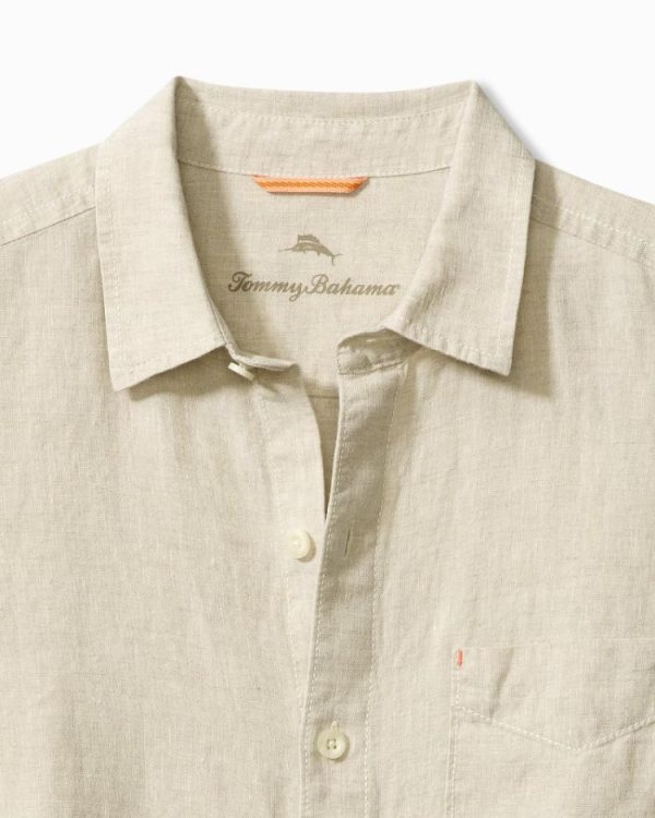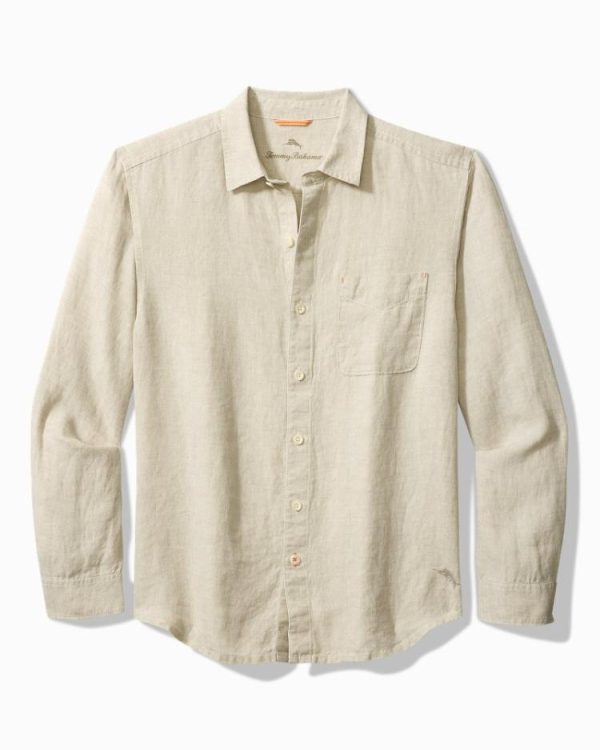 Sunset on a secluded beach. The last light of day bathes swaying palms. Digging your feet into the warm sand. That’s the relaxed feeling you’ll have when you wear this incredibly lightweight shirt. Made from soft premium linen for comfort in warmer weather, it’s pigment printed with a solid color for an incredible look that gets better over time. A front pocket provides the perfect spot for your Havana or wraparound shades.