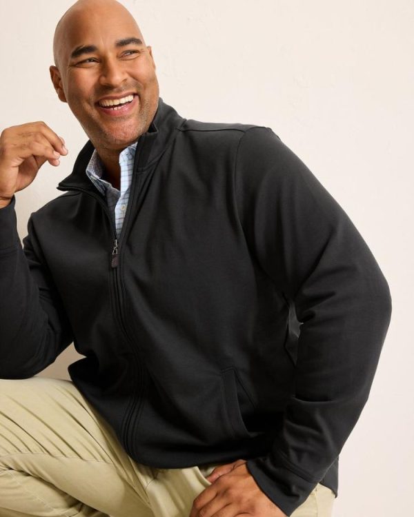 Layer on supremely soft comfort with this versatile full-zip jacket, crafted from pima cotton and featuring sleek details, like a leather zipper pull, that instantly elevate a traditionally casual style.