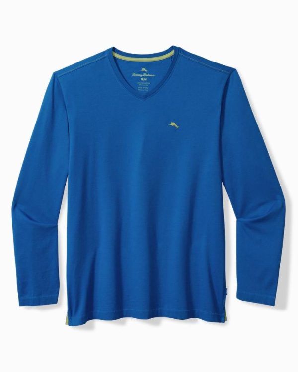 Men T-Shirts | Tommy Bahama Big & Tall Bali Skyline V-Neck Long-Sleeve T-Shirt Cobalt Sea