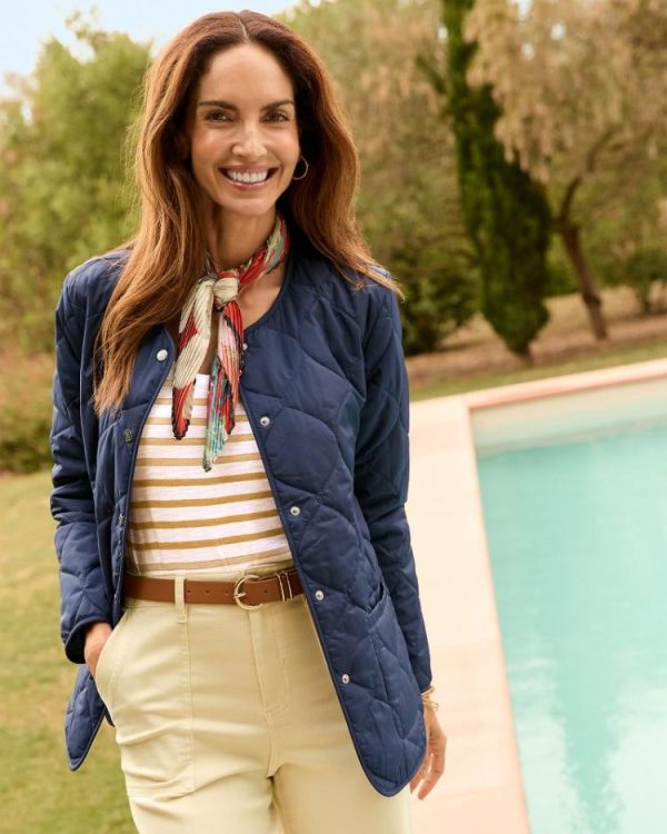 An ultra-lightweight jacket with a rounded silhouette and unique quilting details inspires an effortless layer that makes every casual adventure all the more stylish.