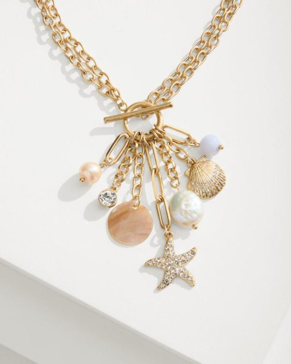 Channel your passion for paradise in a statement gold necklace with an abundance of embellished sea-inspired charms.