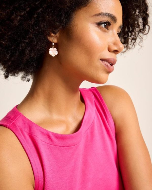 Delicate hibiscus charms with subtle hints of coral pink define the dainty appeal of these sparkle-embellished earrings.