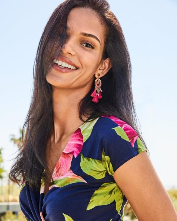 Decoratively detailed with gold sparkly accents, bold-hued tassels, and a dainty island-inspired design, these earrings are sure to make a stylish impact.