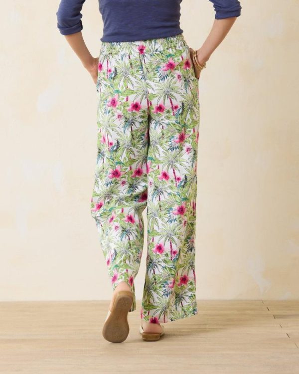 Dainty, artistic etches of palm trees and hibiscus inspire a dreamy print that emboldens our bestselling linen pants, complete with pockets and a comfortable drawstring waist.